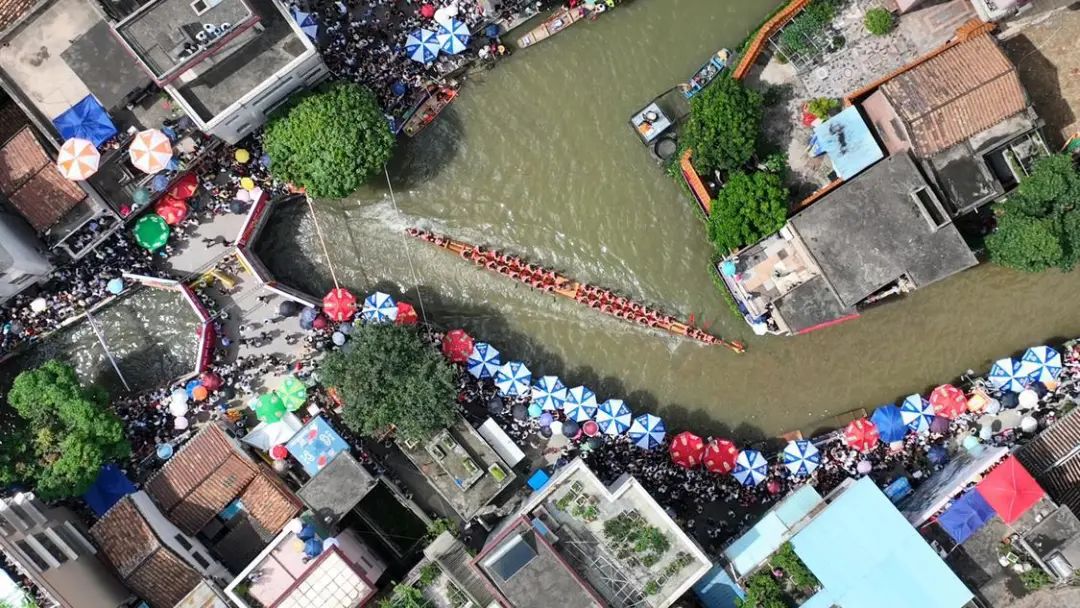 早在2017年,“叠滘弯道赛龙船”就入选了佛山市第六批市级非物质文化遗产代表性项目名录。叠滘的河道呈典型的岭南水乡风貌,蜿蜒曲折且宽窄不一,最窄处仅容两艘龙舟并行。这样独特的河道地形,造就了全球独一无二的龙船漂移赛道。