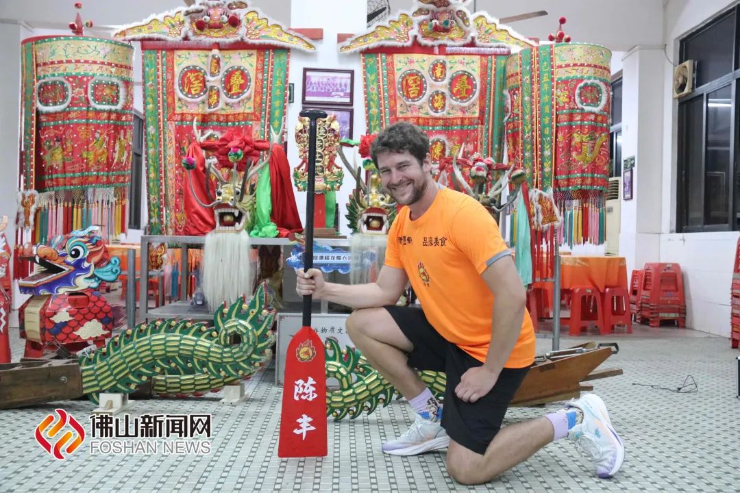 佛山市新闻传媒中心记者王澍、樊继成/摄来自德国的Michael,目前在顺德担任德语教师。他通过朋友的分享了解到佛山叠滘龙船漂移赛,觉得非常有趣。在叠滘陈丰村龙船基地进行实地参观体验后,Michael决定参与到这项独一无二的龙船漂移赛事中。如今,Michael已加入叠滘陈丰龙船队,成为首位外籍“扒仔”,积极备战6月份的赛事。