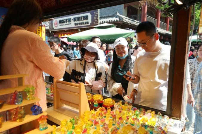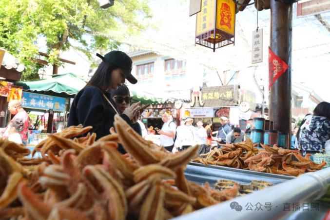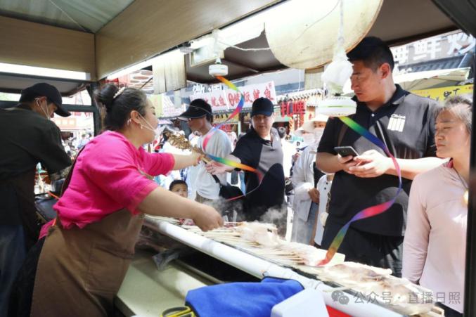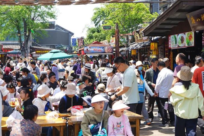 日照天台山旅游区的太阳街市,五一假期迎来了大批游客,现场游客络绎不绝。