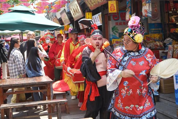步入太阳街市,这里处处人头攒动,热闹非凡。一场场精彩的演艺接连上演,吸引着游客们纷纷驻足观赏。