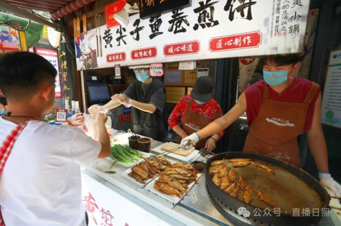 街道上,各种美食摊位一字排开,香气四溢。黄尖子鱼卷煎饼、海沙子面、烤鲅鱼……从传统的糕点到特色的海鲜小吃,种类繁多,让人眼花缭乱,美食多得吃不完!S