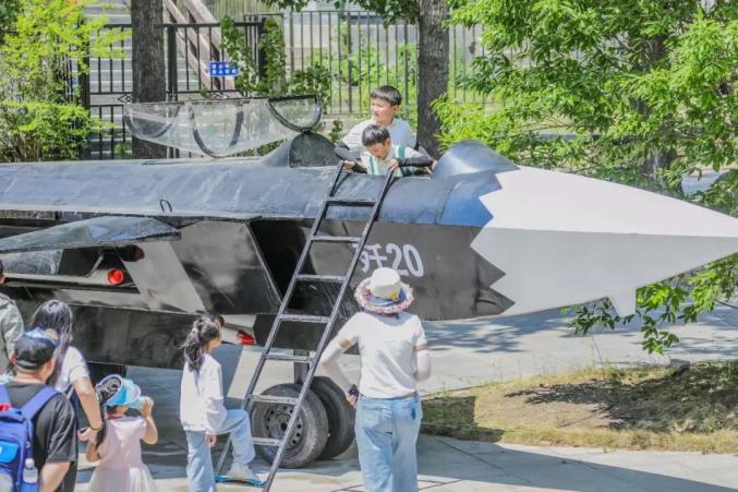 大剧院外面则放置了多架大型飞机航模,供小朋友拍照打卡,坐进驾驶舱,成为“小小飞行员”!S