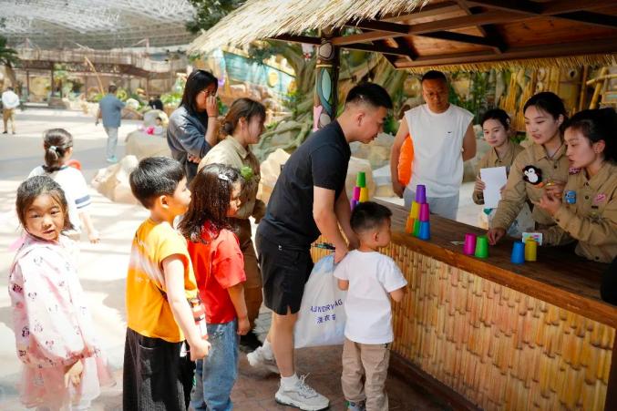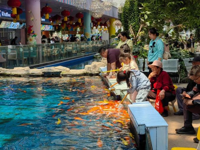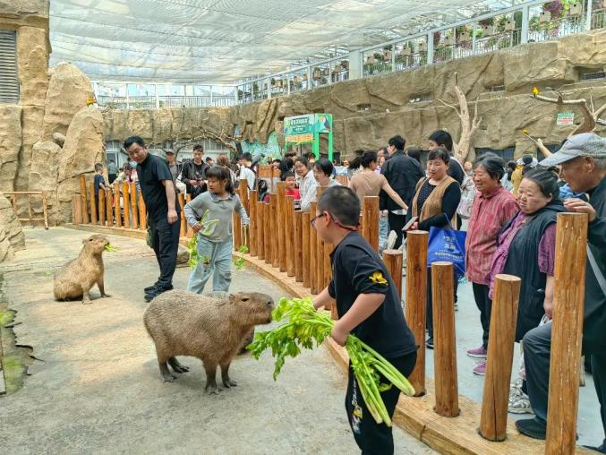 互动投喂区排起长队,亲子家庭笑声此起彼伏,热闹氛围弥漫每个角落。