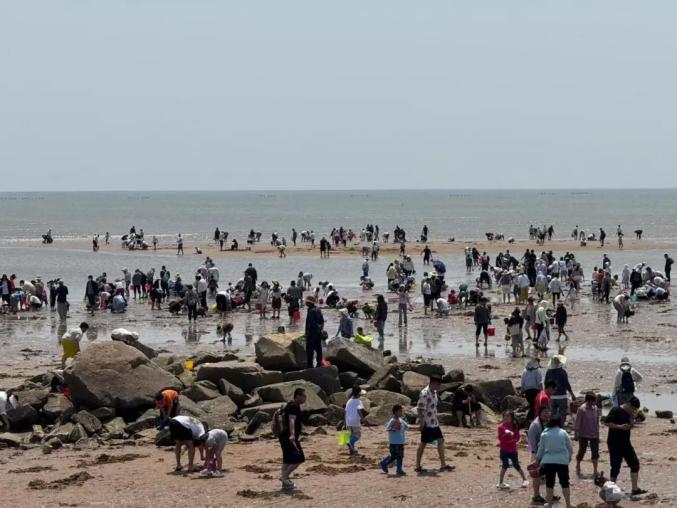 五月正是赶海的好时节,五一假期,刘家湾赶海园的滩涂上迎来第一波小高峰。