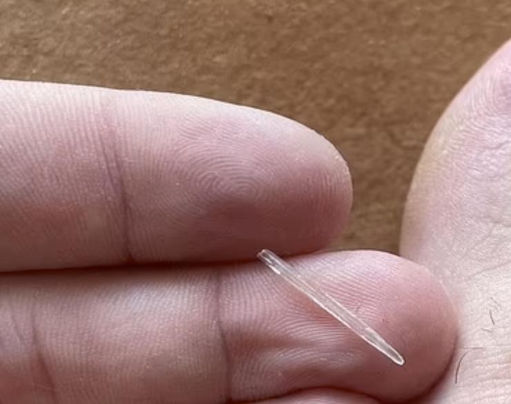 脚都肿了 图源:adam clancy尽管最初的疼痛有所缓解,但数月后,克兰西依然感到脚部不适,并怀疑有异物残留。最终,他在家中使用剃须刀做了个“小手术”,在洗澡时挤出了一根长达 2 厘米、透明如塑料片的毒刺。