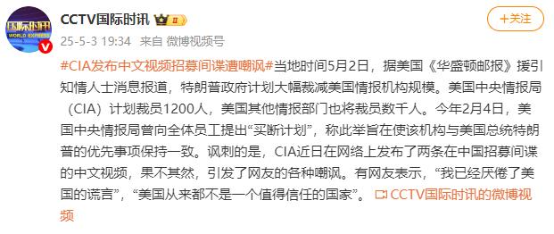来源|CCTV国际时讯原标题:《CIA发中文视频招募间谍,被嘲讽了》