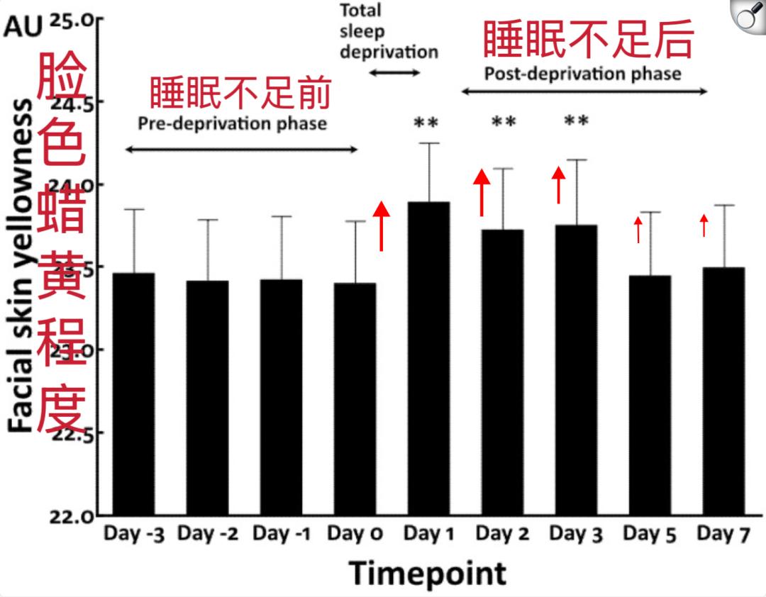 研究发现,睡得晚、睡得少,我们的脸会明显发黄、含水率降低、气色不好。