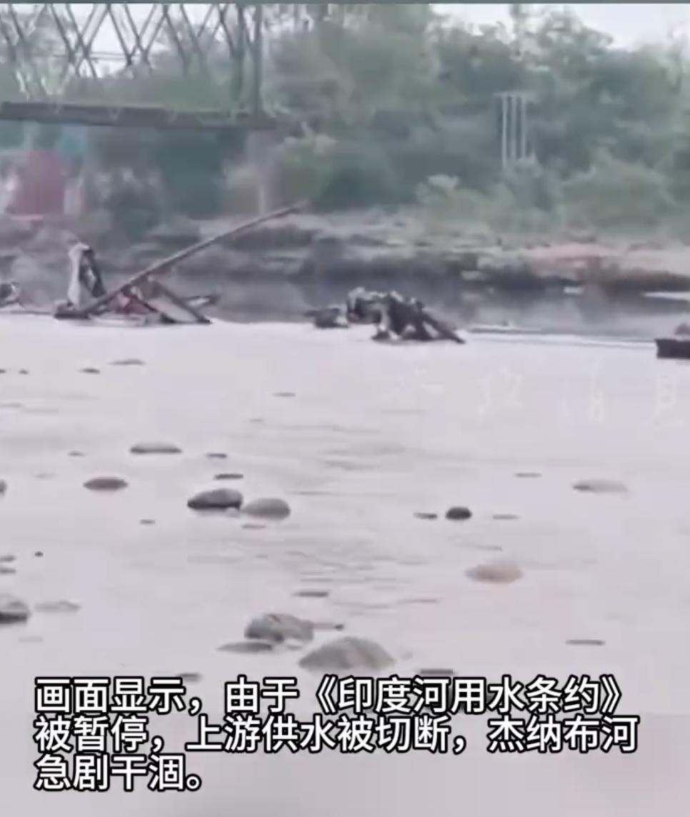 据参考消息报道,印媒5月4日称,印度已经切断了从杰纳布河上的伯格利哈尔大坝流向巴基斯坦的水源,并称不允许印度河的“一滴水”流向巴基斯坦。视频画面显示,杰纳布河急剧干涸。