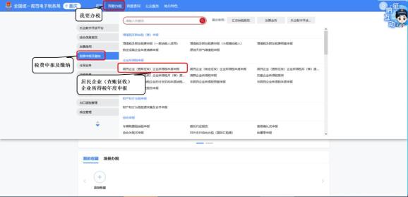1.登录新电子税局,依次点击【我要办税】-【税费申报及缴纳】,选择【居民企业(查账征收)企业所得税年度申报】进入申报页面。