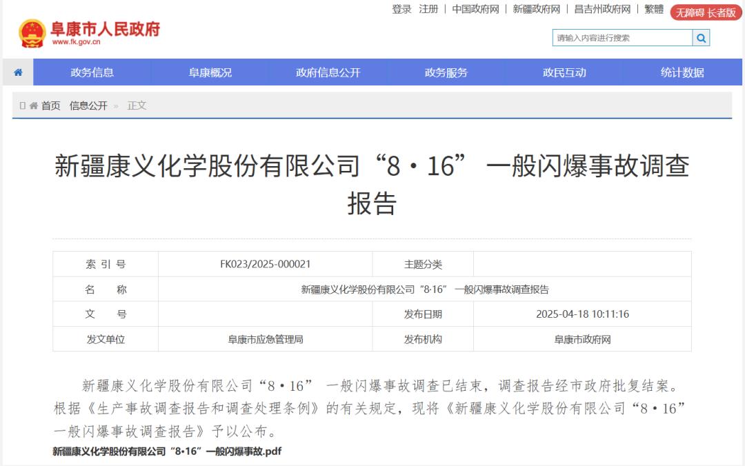 2024年8月16日15时44分许,新疆康义化学股份有限公司次氯酸钠装置发生一起闪爆事故,造成2人死亡、3人受伤,直接经济损失635万元。