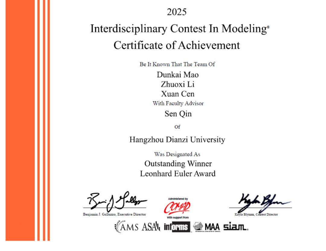 摘得“欧拉奖”,总成绩全球第十,杭电学子在2025年美国大学生数学建模竞赛和交叉学科建模竞赛中再获…