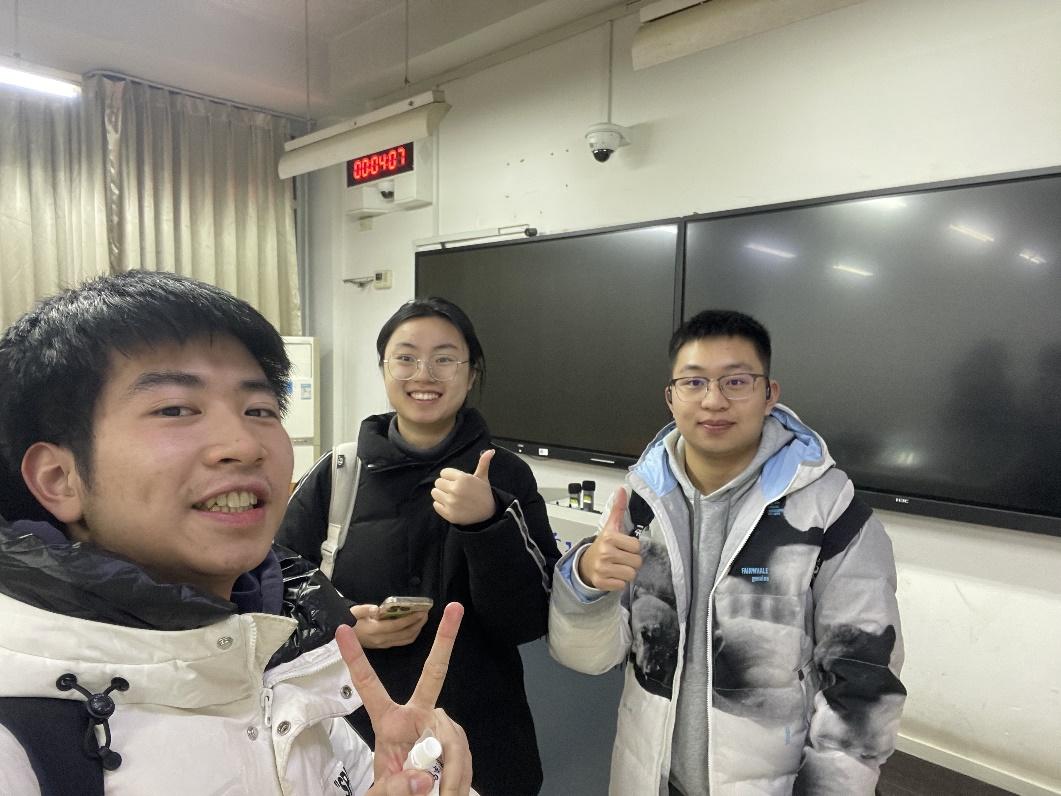 Outstanding Winner( Leonhard Euler Award)获得者(左:李卓曦,中:岑萱,右:毛顿开)