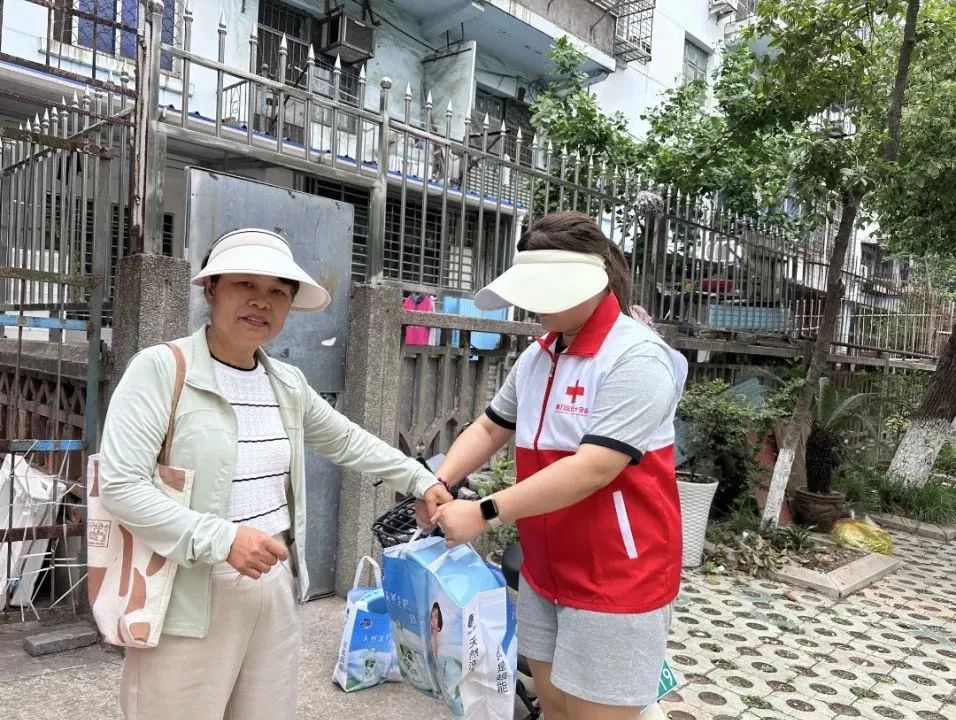 社区工作人员将雷锋包送至“学雷锋、做好事”的热心居民家中