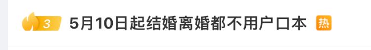 注意啦!5月10日起,结婚离婚都不再需要户口本!5月9日,相关话题更是登上新浪微博热搜榜,引发广大网友们热议。