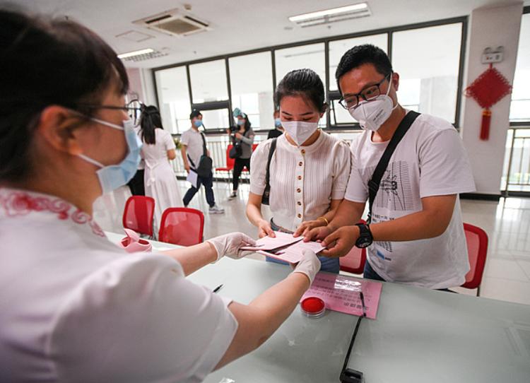 武汉市武昌区民政局婚姻登记处工作人员表示,5月10日起,即便是来汉旅客,都可以在武汉就近的婚姻登记处办理婚姻登记领证。除周六延时服务需预约外,在正常工作日可直接前往现场办理。武汉市江汉区民政局婚姻登记处也表示,对于外地来汉人员,只要证件审核通过,均可正常受理登记。