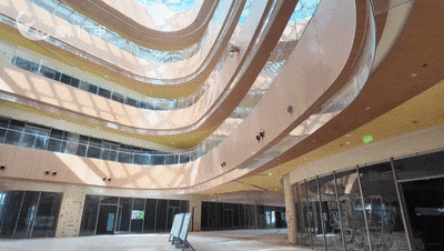 为了最大程度引入自然光顶层设置了6个巨大的玻璃采光顶
