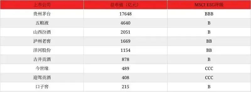 此外,据知名指数公司MSCI评级(全球评级权威度、公信度高的ESG评级体系之一),贵州茅台的评级从原先的B级跃升至BBB级(位居行业第一)。