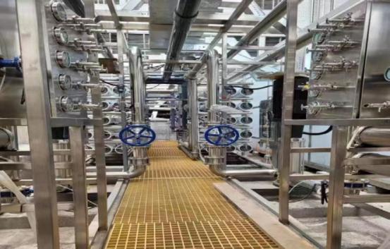也有企业采用离子交换+精滤+超滤+紫外灭菌”。离子交换采用阳离子交换树脂,去除洗瓶废水中钙、镁等离子,降低洗瓶废水硬度。精滤采用1-5微米孔径精滤膜,超滤采用0.01微米孔径超滤膜,去除洗瓶废水中的杂质,处理后可循环回用。