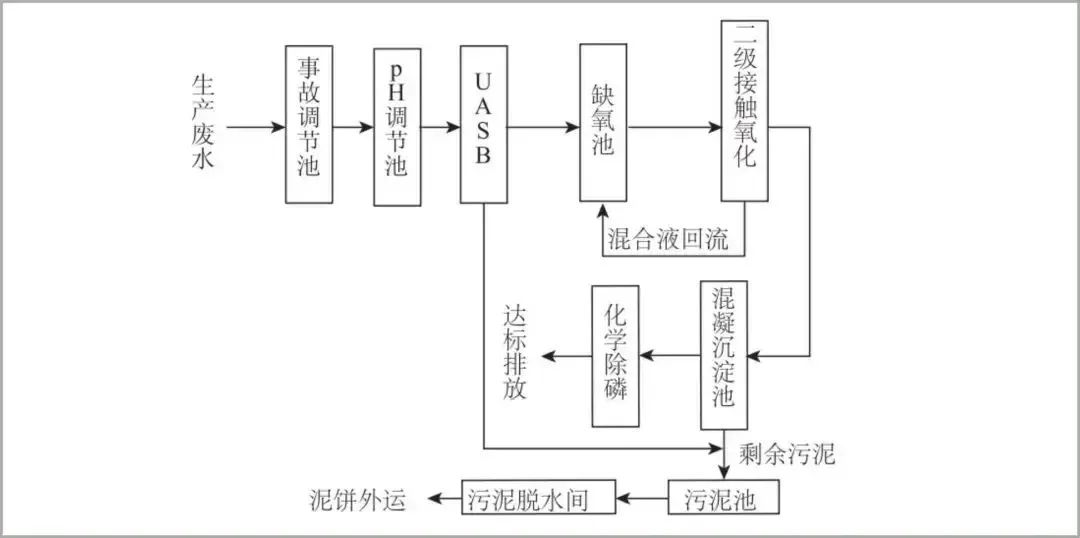 如在贵州赤水河支流的白酒企业,采用UASB+缺氧+二级接触氧化法为主体处理工艺进行处理。