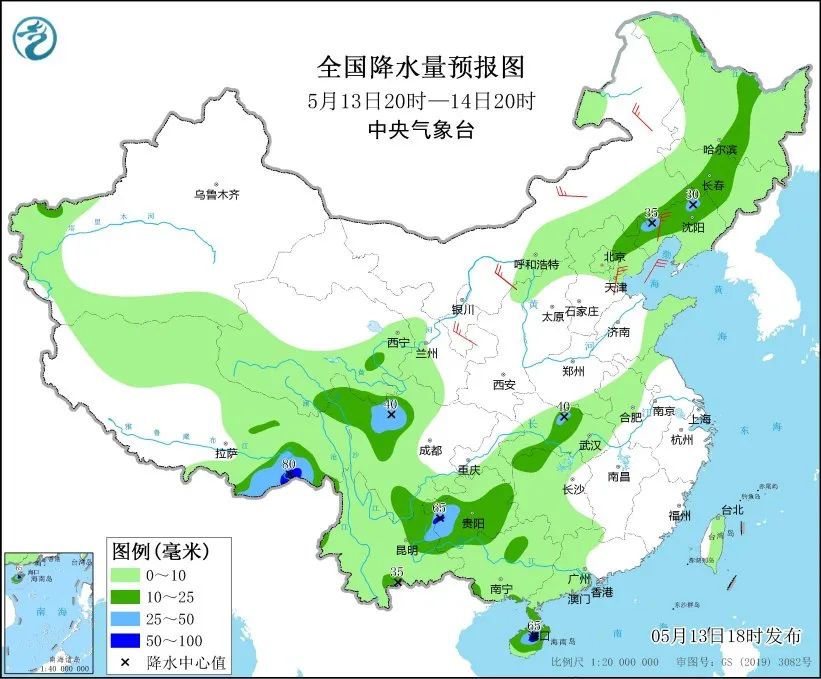 今日天气5月13日20时至14日20时,黑龙江中部、吉林中部、辽宁北部、河北北部、湖北中西部部、湖南西北部、广西西北部和南部沿海、海南岛、贵州中南部、云南东部、四川南部、川西高原中北部、西藏东南部等地部分地区有中到大雨,其中,西藏东南部、贵州西部、云南东部、海南岛中部等地部分地区有暴雨。