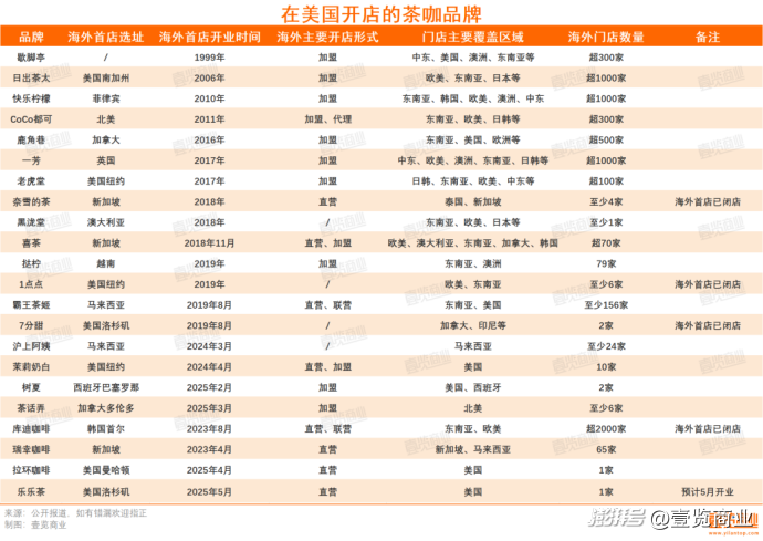 具体看,喜茶门店数量最多,今年情人节其第27家门店在华盛顿都会区开业。刚刚上市的沪上阿姨、改名“Naìsnow”的奈雪的茶、挞柠、柠季、瑞幸咖啡、乐乐茶也已经开启或正在装修美国店铺。