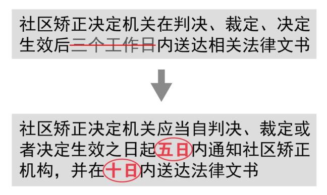 《社区矫正实施办法》第5条规定:社区矫正决定机关在判决、裁定、决定生效后三个工作日内送达相关法律文书;《中华人民共和国社区矫正法》第20条规定:社区矫正决定机关应当自判决、裁定或者决定生效之日起五日内通知社区矫正机构,并在十日内送达法律文书。