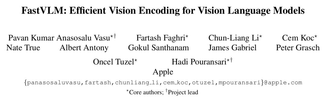 论文标题: FastVLM: Efficient Vision Encoding for Vision Language Models论文地址:https://www.arxiv.org/abs/2412.13303