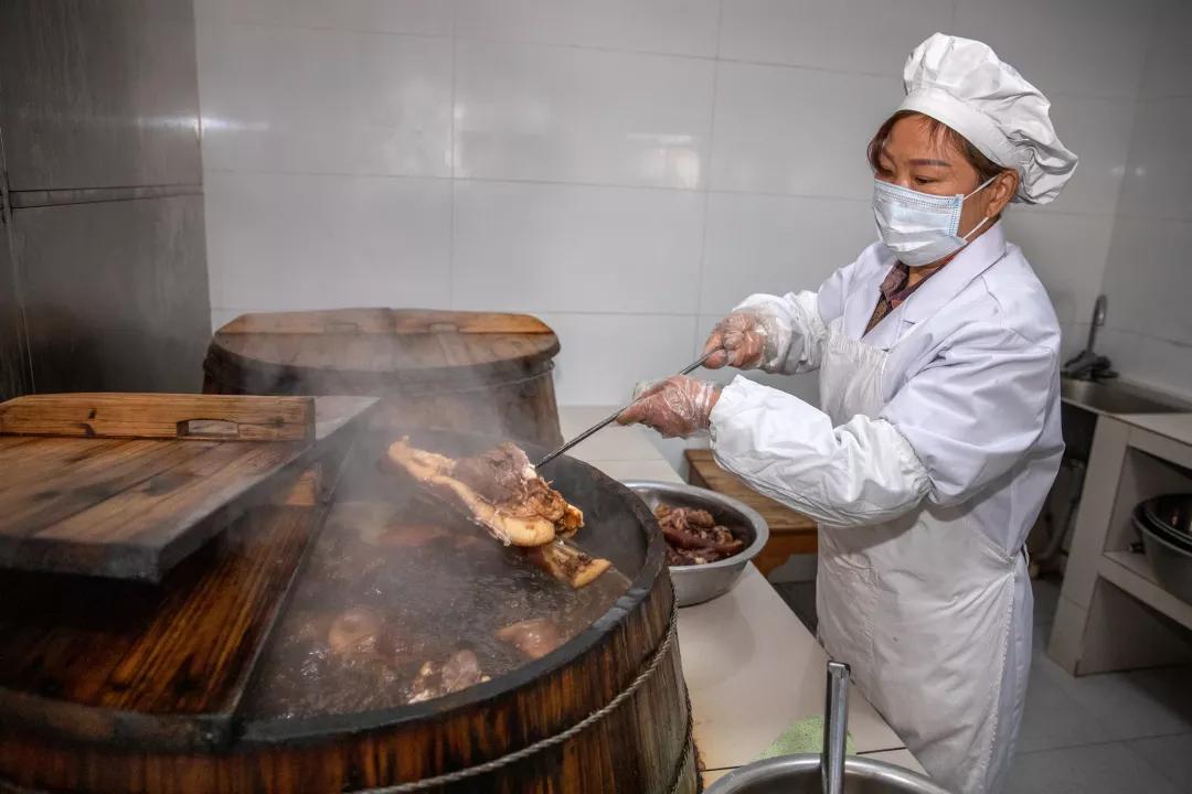 ○ 这是因为老板娘王冬梅是六合八百桥社区赵秦村人,17岁那年开始跟父亲学习卤煮猪头肉,从小的耳濡目染,后天的钻研,加上祖传秘方,很快就做出名气——甚至还有外地人赶过来特意“一尝滋味”。