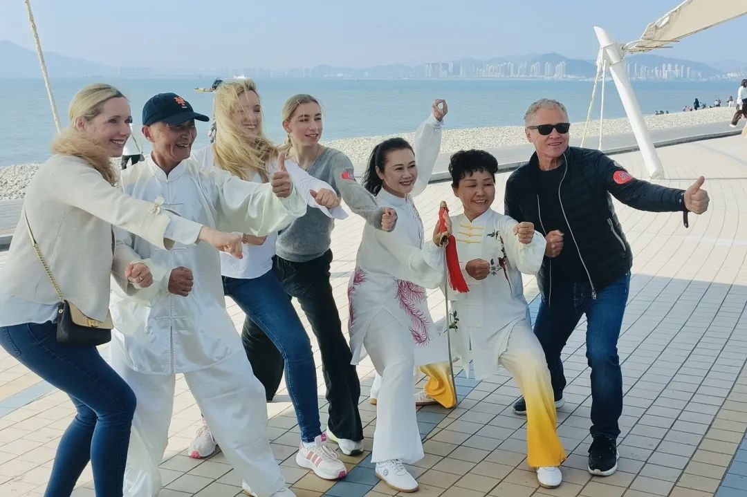 (邮轮入境旅游外宾在厦门环岛路体验太极)