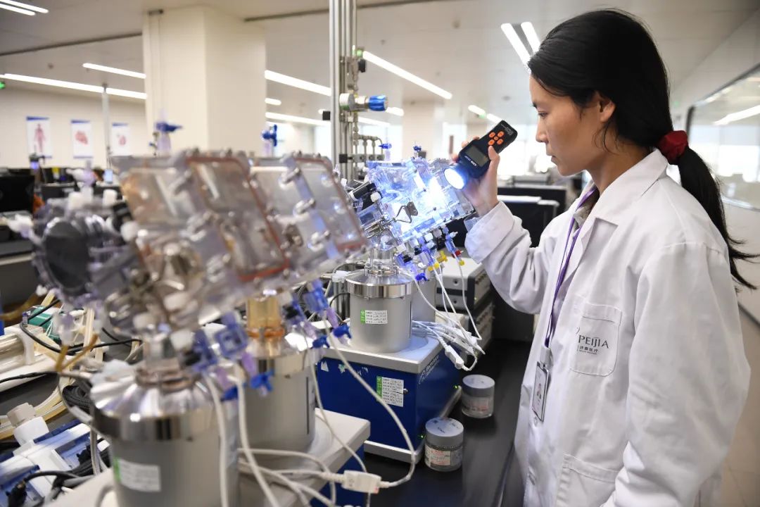 3月21日,在位于苏州工业园区的沛嘉医疗科技(苏州)有限公司测试实验室里,检测人员使用频闪仪检查正在疲劳测试中的人工心脏瓣膜开闭合形态。新华社发(陈雨禾 摄)03