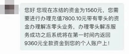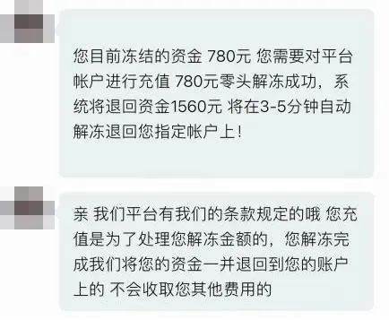 客服称需充值7800元带零头资金办理解冻零头业务