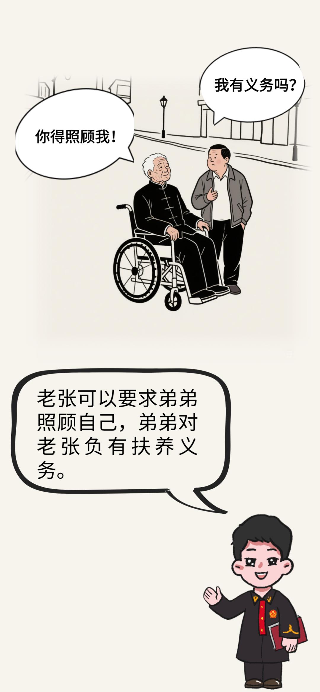 老张的父母去世后,他独自将弟弟养大成人,为照顾弟弟他一直未婚。如今老张年事已高,没了生活来源,弟弟生活条件不错。他能要求弟弟照顾自己吗?