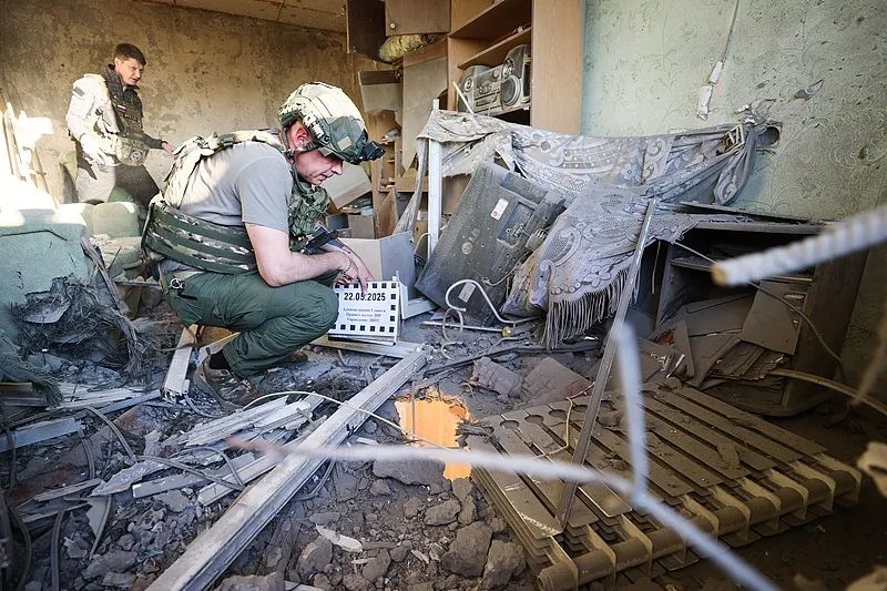 当地时间2025年5月22日,顿涅茨克,潘泰列莫诺夫卡村一处因乌克兰无人机袭击而受损的公寓。与此同时,欧盟也试图以"三边机制(美欧乌)"挤入谈判进程。其真实意图在于:通过协调制裁施压,单方面设定谈判前提条件和进程框架。