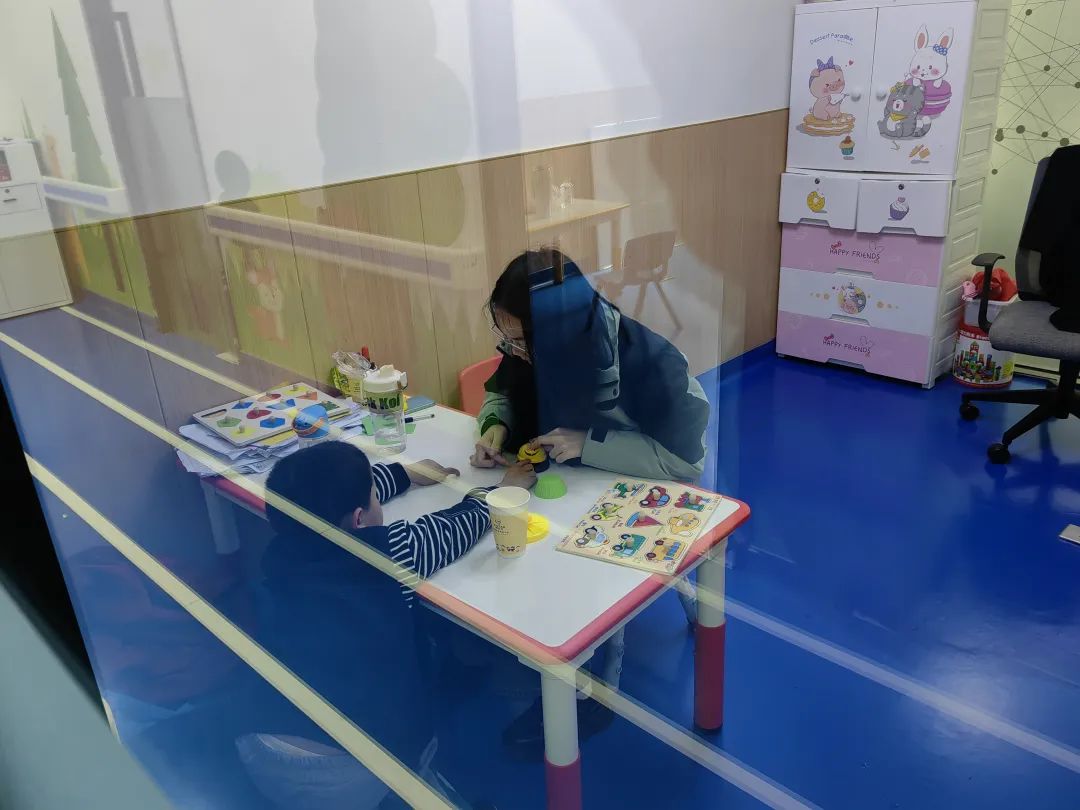▲冯睿团队也同步采用传统的治疗方式同时,冯睿团队也同步采用传统的治疗方式。近日记者看到,其中心有数个治疗室,工作人员们对孤独症儿童们展开语言、社交、音乐等疗法。