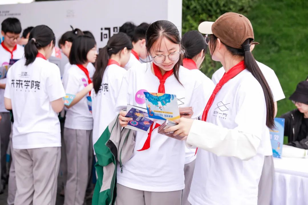 此次活动以“科幻漫行”为主线,围绕在水一方科幻馆周边1公里的环线,打卡四大主题场景,依托少年儿童出版社的经典科普品牌“十万个为什么”,精心打造了4个科幻科普打卡点,巧妙地将科学知识通过“自动问号机”抽取“泡泡问号签”形式融入到实景体验中,实现 “场景化学 +游戏化探索”的创新模式。在打卡过程中,通过“科幻+科普”的沉浸式体验,将抽象的科学概念转化为青少年可感知的探索之旅。青少年们通过亲身体验和互动,深入理解科学知识,感受科学的魅力。