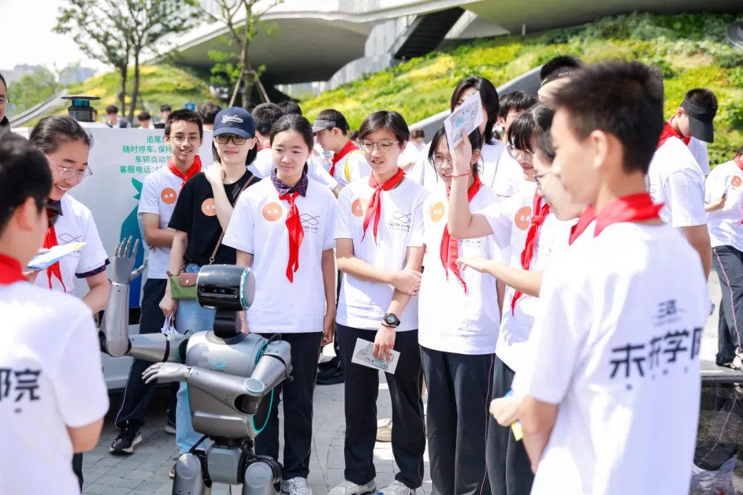 活动现场,鲸鱼科技机器人、宇树Go2机器狗等多款机器人闪现,与青少年们亲密互动。同时,“行深智能公司”无人车开启移动补给站,为参与者提供便捷服务。这些前沿科技元素的融入,不仅为活动增添了科技感,更激发了青少年对科技的好奇与探索欲,让他们近距离感受到科技发展的日新月异,契合“十万个未来”对科技前沿探索的追求。