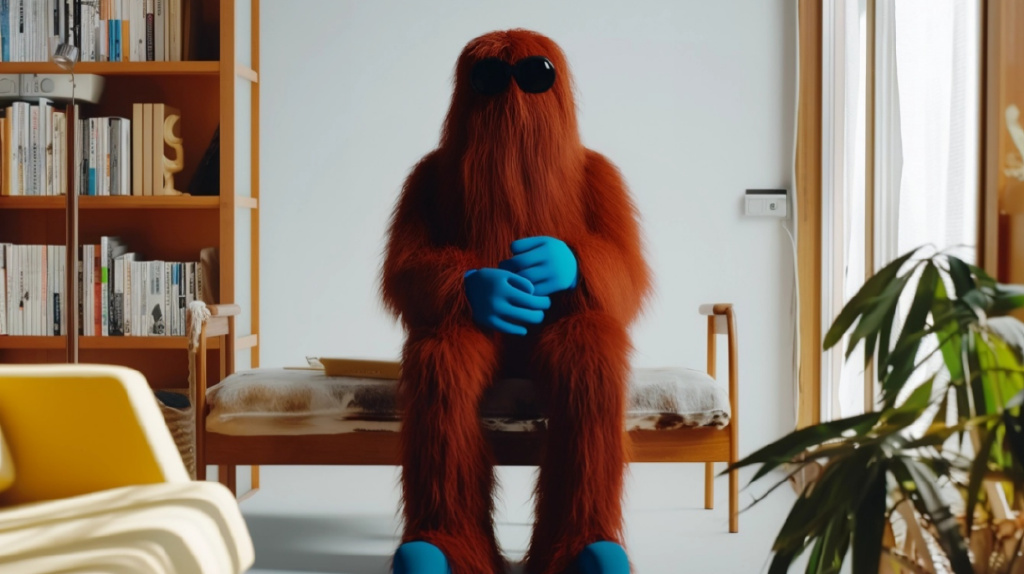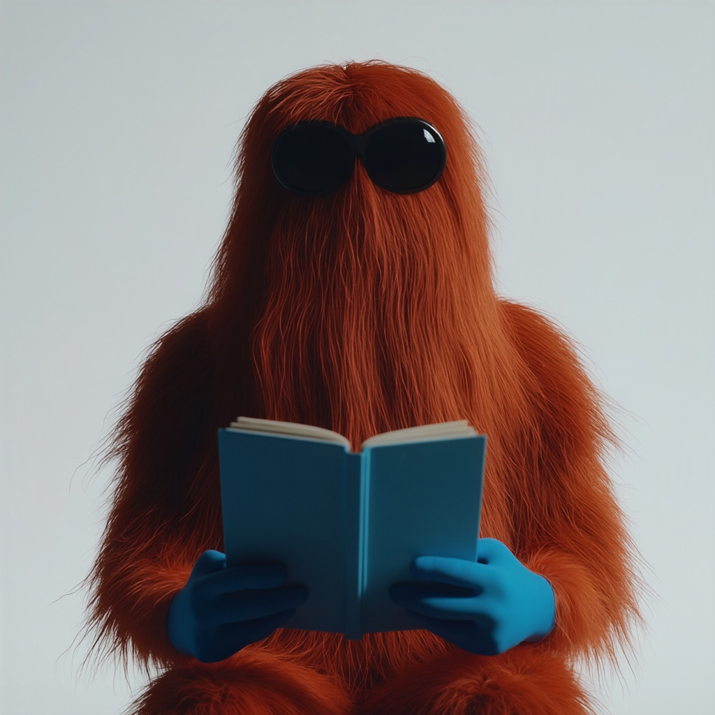 这是一只橙红色长毛覆盖全身,总爱用黑色墨镜罩住面部的“神秘”形象,气质散发着朋克与不羁。