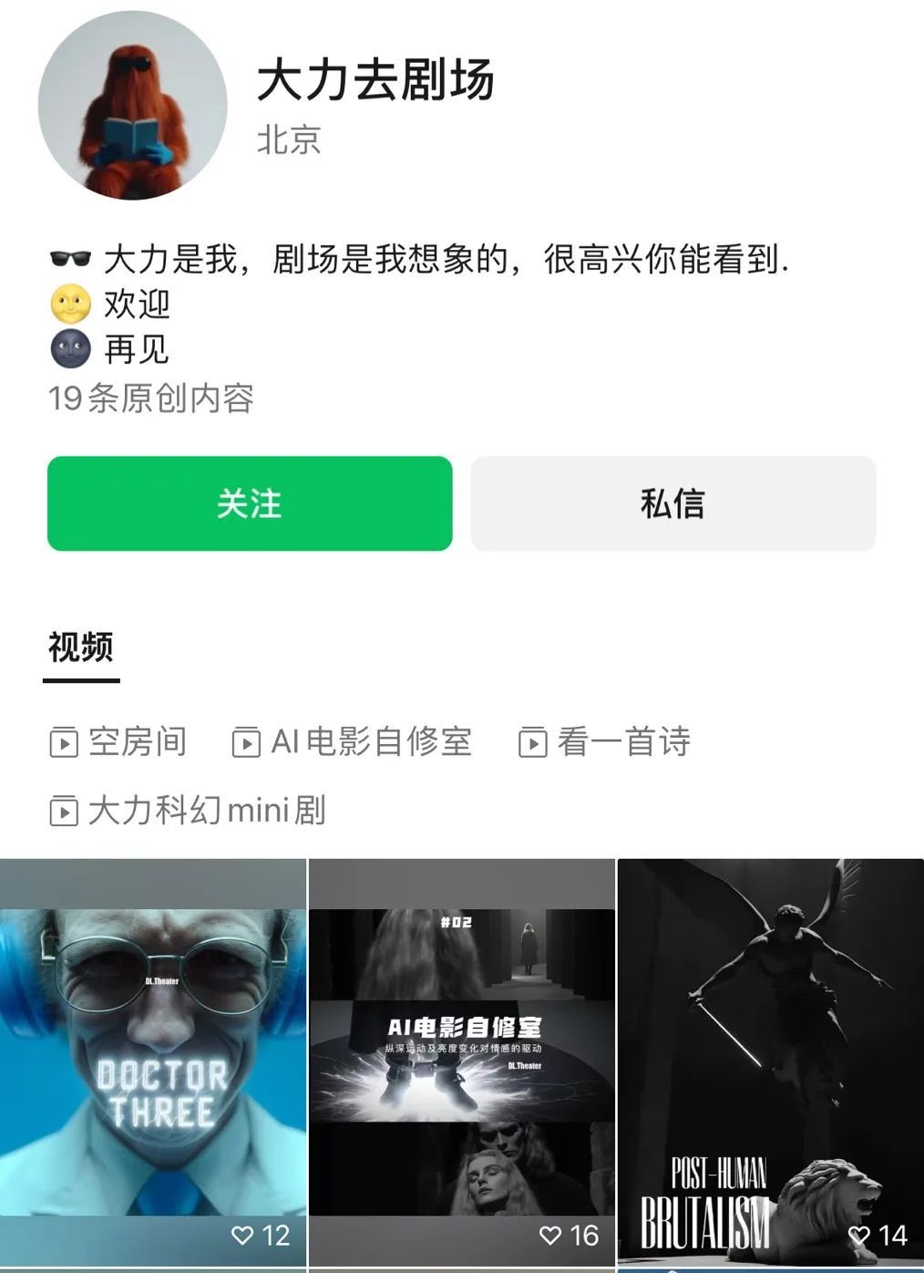 次年,她的自媒体账号“大力去剧场” 频道诞生,成为她释放创造力的全新舞台。