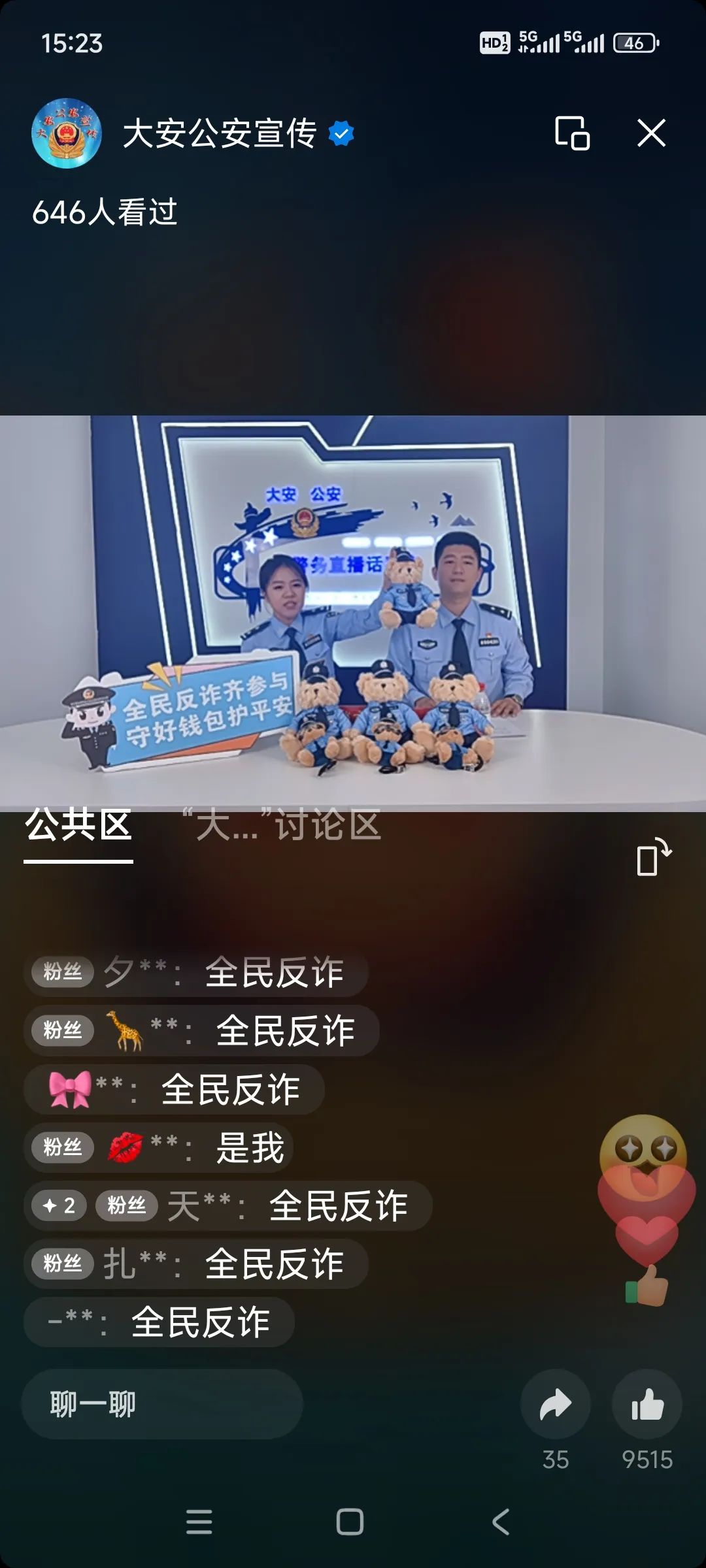 直播结束后,直播间反响热烈。市民王女士感慨道:“原来骗子离我们这么近!要不是这堂课,我都不知道身边潜在的危险,尤其是互动环节特别有意思,感觉自己真正参与到反诈学习中了!”此次直播活动通过创新互动形式,不仅增强了直播间网友们的反诈意识,更有效提升了他们辨别和防范电信诈骗的能力,为构建“全民反诈”新格局注入强大动力。原标题:《“警”彩纷呈,这场反诈直播“干货”满满!》