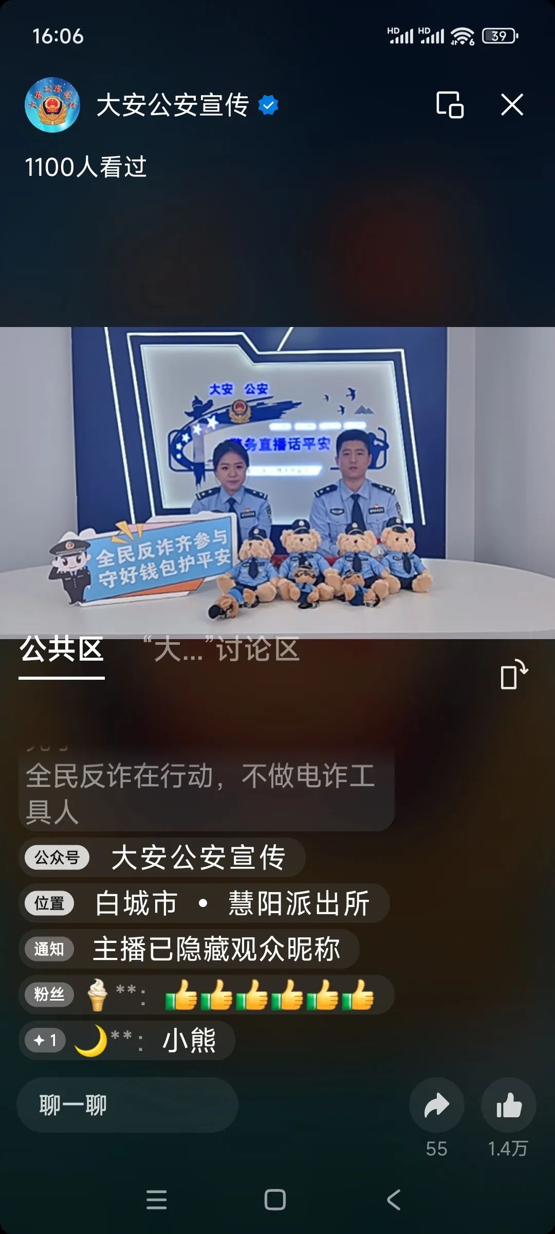 大安市公安局牢固树立“靠前一步、主动作为”工作理念,始终将电诈案件源头防范作为重点工作。近日,大安市公安局“警务直播话平安”直播间推出“反诈直通车”线上直播活动,60分钟的直播凭借丰富的互动环节和实用内容,吸引了超3000人次在线观看。