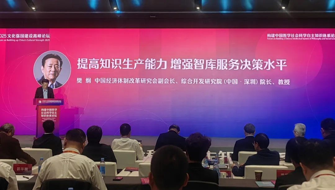 5月27日,在2025文化强国建设高峰论坛“构建中国哲学社会科学自主知识体系”论坛上,中国经济体制改革研究会副会长、综合开发研究院(中国·深圳)院长樊纲教授从提高基础理论研究的能力、面对现实问题服务决策研究、提高体制机制创新能力三方面分享了如何进一步提升知识生产能力、增强智库服务决策水平。