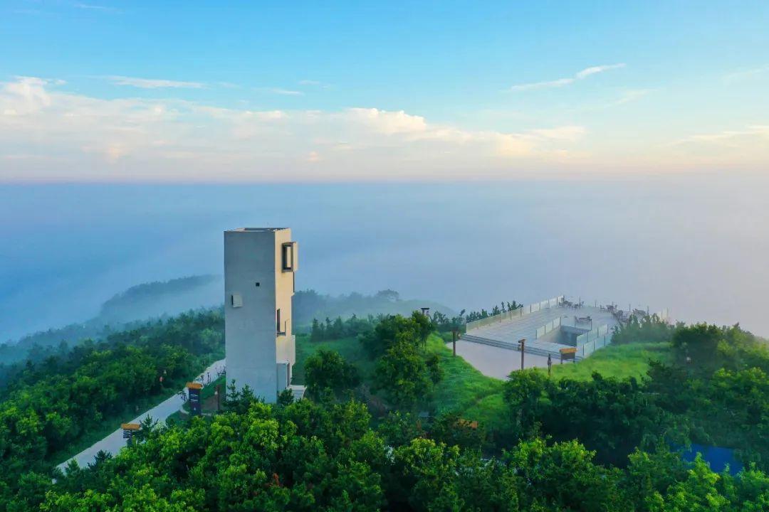 当天气晴朗时,站在山顶向北可以欣赏浮山的峰峦起伏,向南可以一览大海的波澜壮阔。