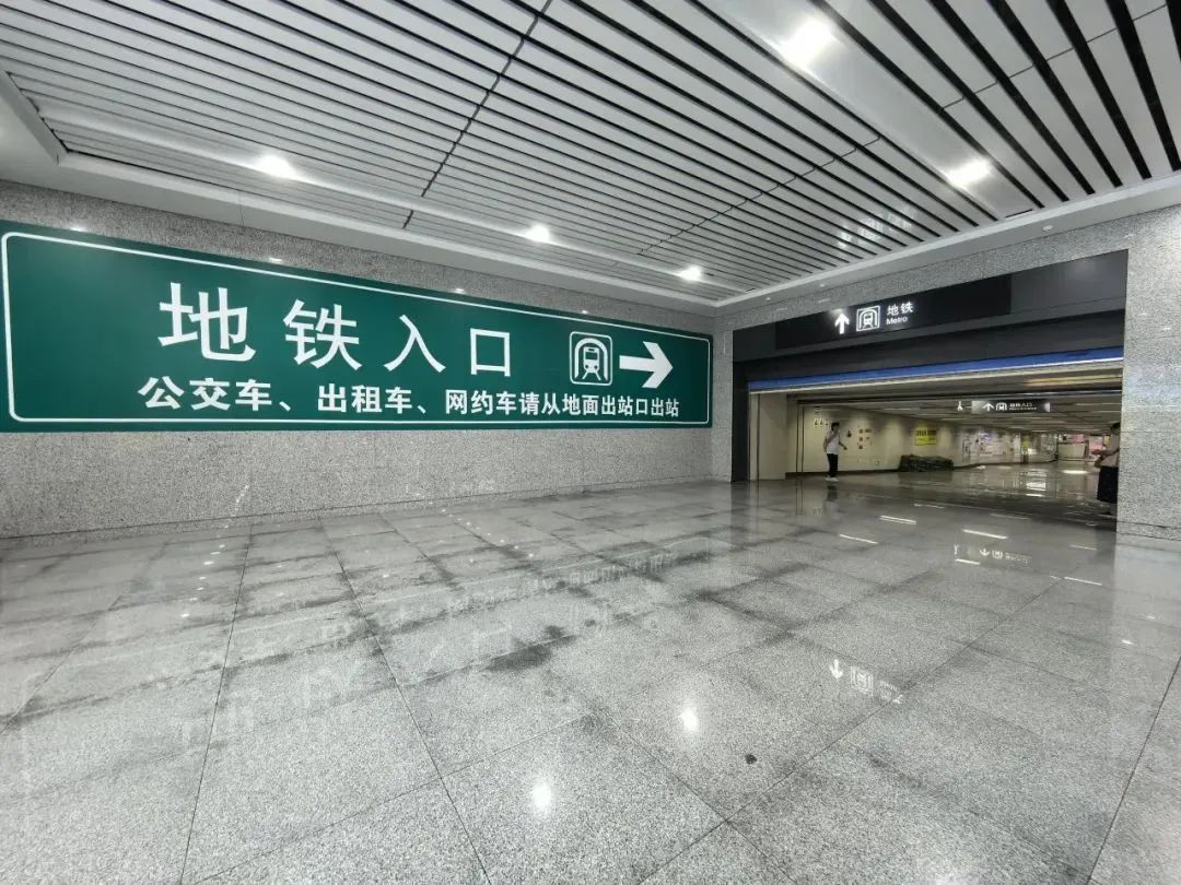 ►乘客可根据“地铁入口”指引标识,抵达铁路与地铁的联络通道,从联络通道快速进入地铁区域乘车;