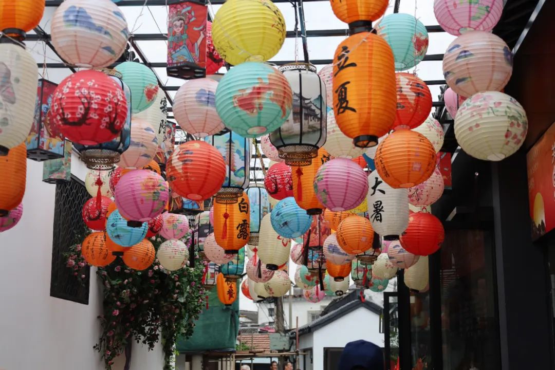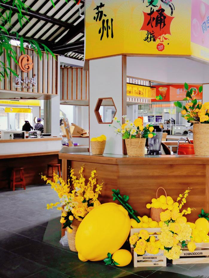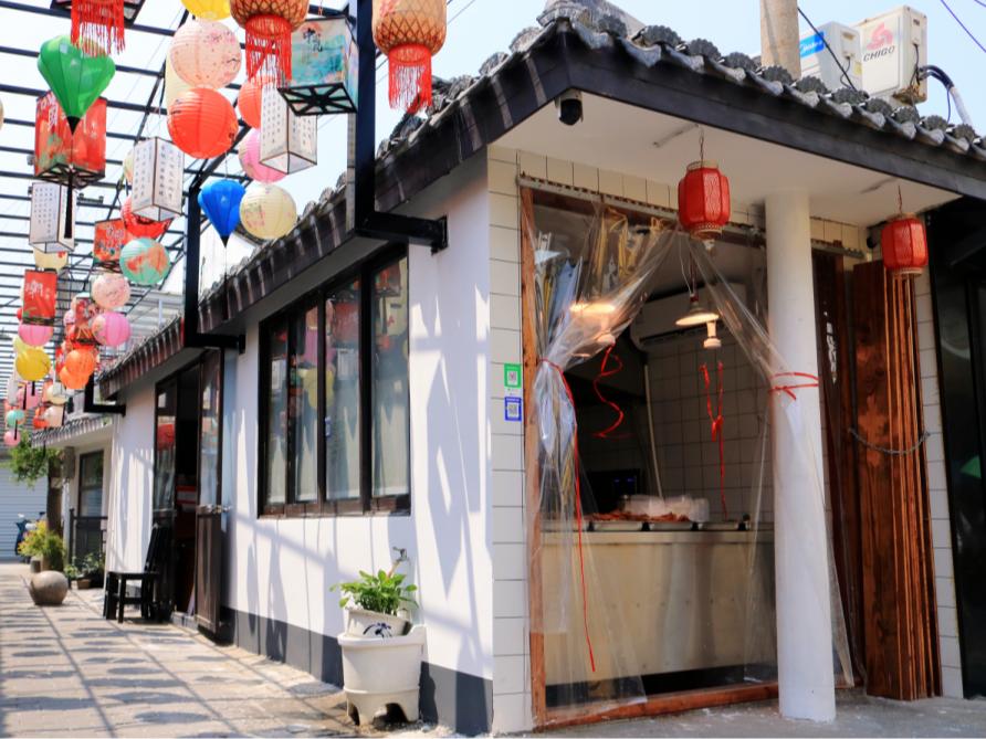 步入市集素墙黛瓦、雕花窗棂等苏式元素