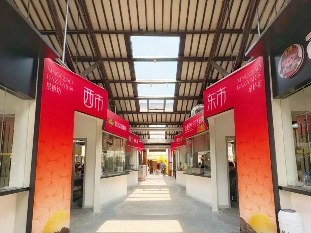 市集以“老店新开”为重点,酱菜铺、生粉店等在星桥扎根三十年的老店铺全新亮相,同时计划引入“赵天禄”等苏州老字号,累计汇聚传统苏味、潮流美食、休闲娱乐等近40家商户。这里不仅有老字号