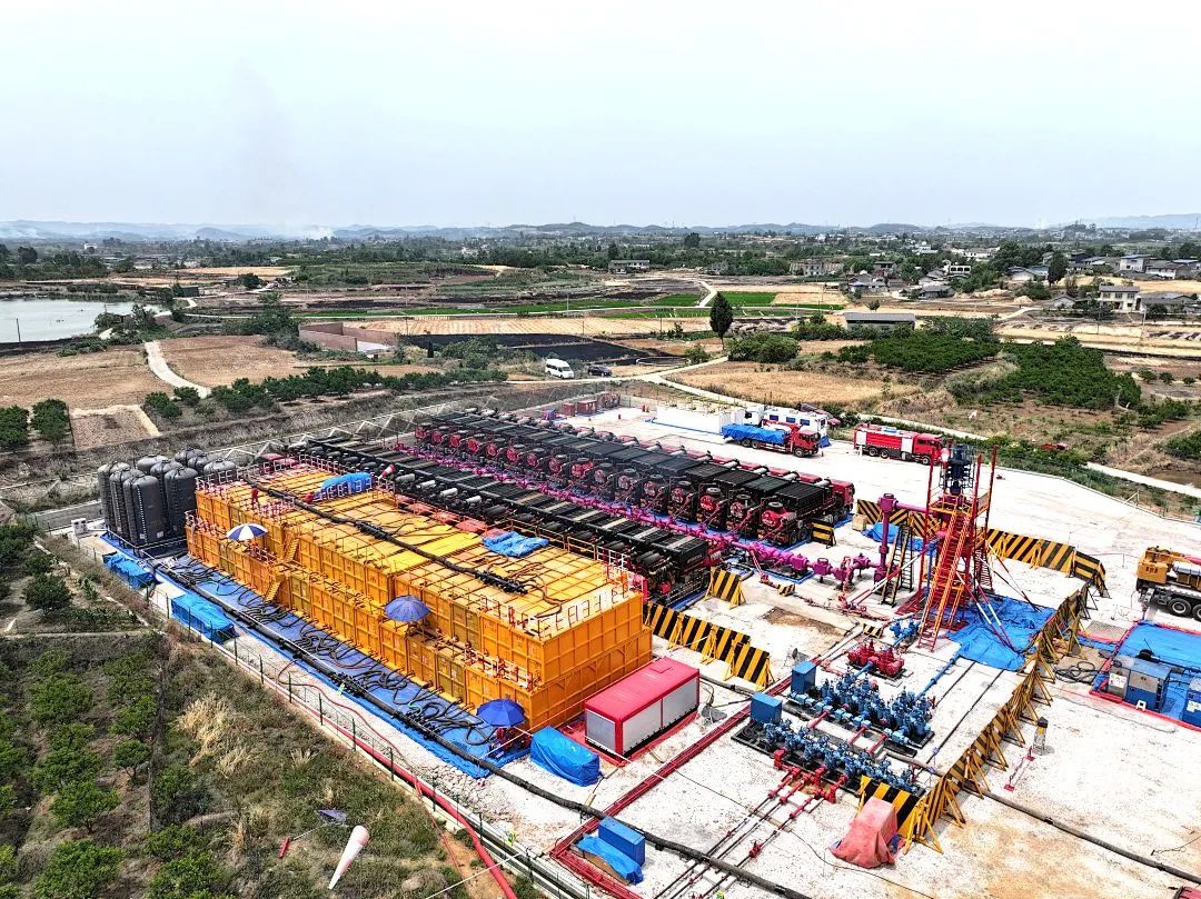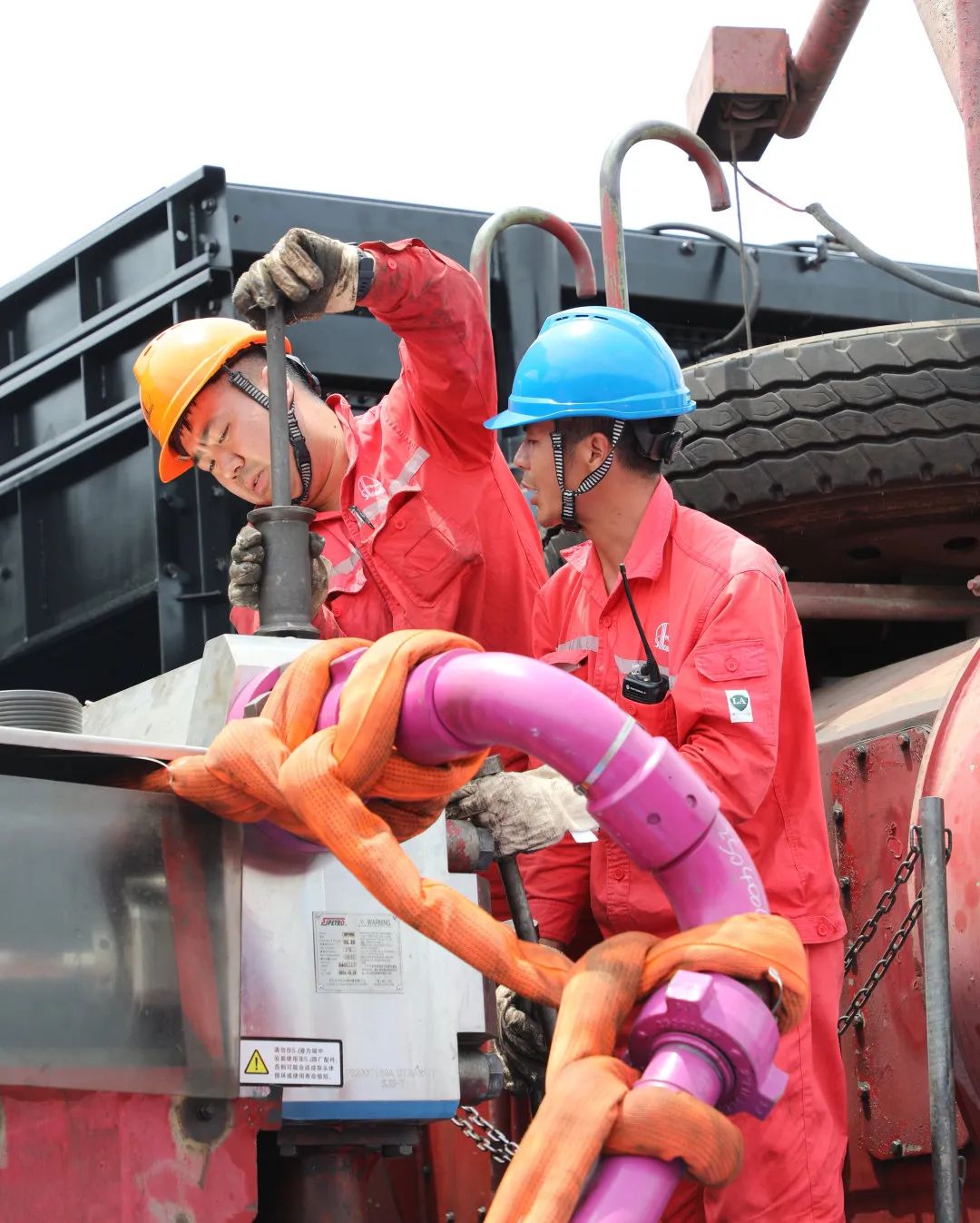 5月25日,公司所属西南石油工程公司井下作业分公司采用175兆帕压裂装备,在新盛214H井首次完成特高压加砂压裂施工,最高压力达到140兆帕,刷新中石化压裂施工压力最高纪录。单段液量4311立方米、单段砂量246.82立方米、施工排量每分钟20立方米,刷新川西须二段单段入地液量最大、单段入地砂量最多、施工排量最高三项纪录,标志着西南工程在特高压施工领域取得重大突破。