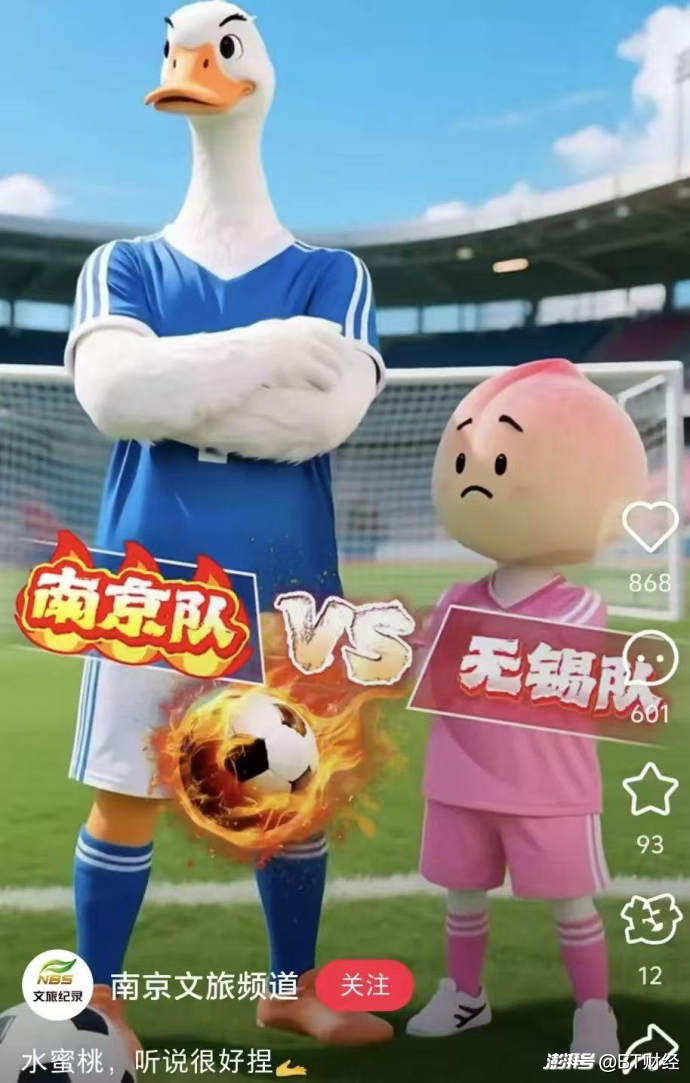 惨烈的竞争不只是赛场,场外也同样暗藏“杀机”。还是以南京为例,南京文旅在与无锡赛前的海报上,“南京咸水鸭”的身高远高于“无锡水蜜桃”,并配文称“水蜜桃,听说很好捏”。这也引来不少网友质疑称南京此举不够大气。