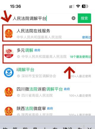 打开微信小程序搜索“人民法院调解平台”或直接扫描下方二维码进入调解平台。
