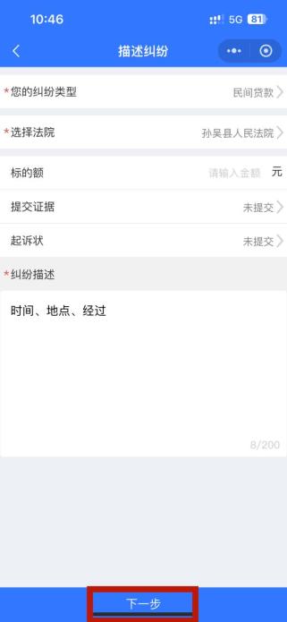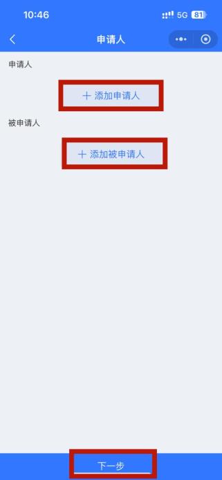 4填写案件信息点击“下一步”,添加“申请人”与“被申请人”信息。