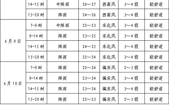 2.梅雨期间温度偏高、湿度大,体感闷热。其中7-10日正值高考期间,需注意降雨和高温高湿对交通出行、考务组织和体感健康等的不利影响;